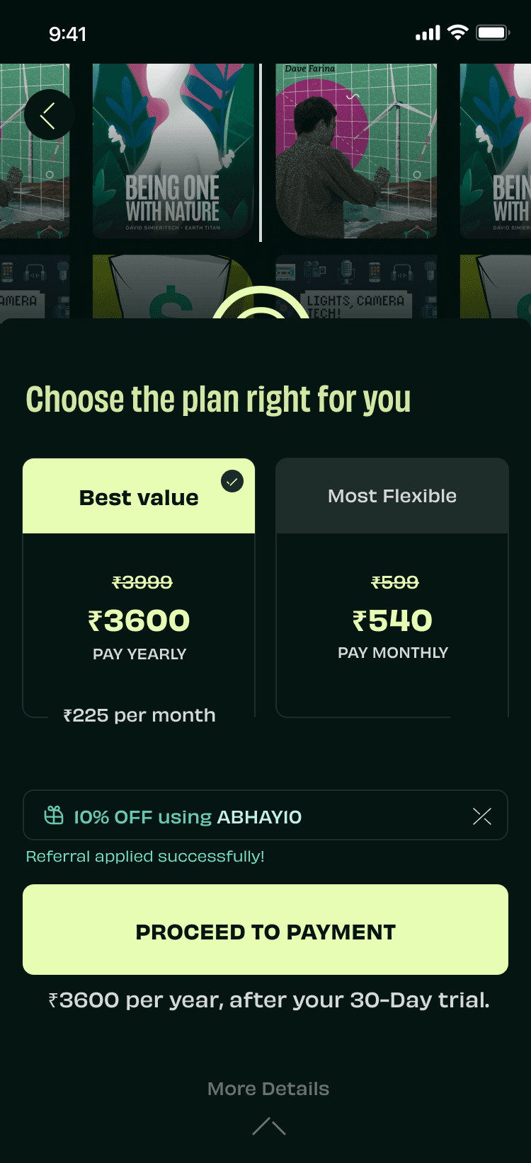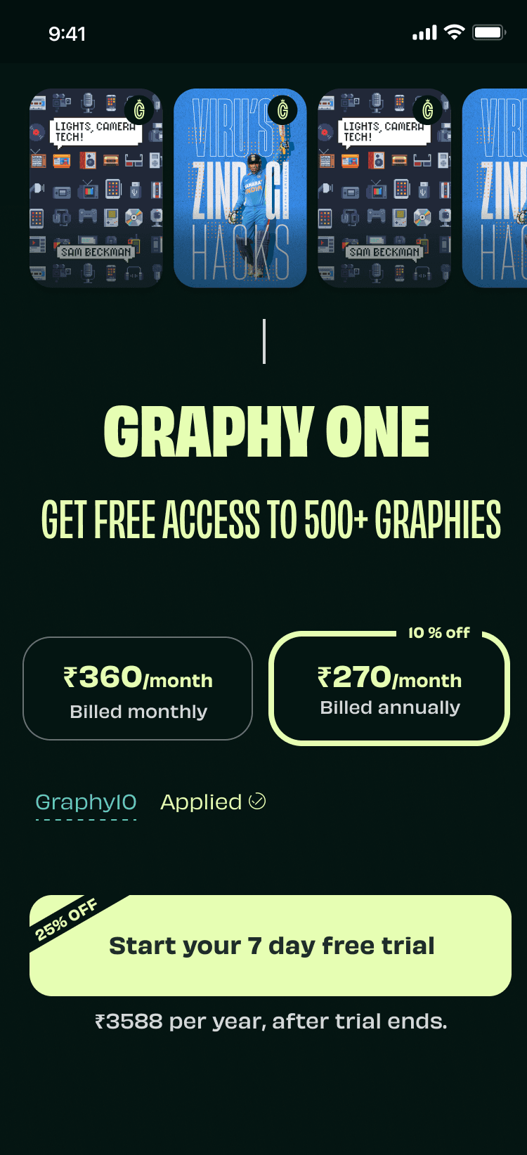 Graphy was moving away from a marketplace model to a subscription model. The payment flow was redesigned with monthly and yearly plans to support subscriptions. This redesign also included adding discount coupons flow from Graphers during purchase.