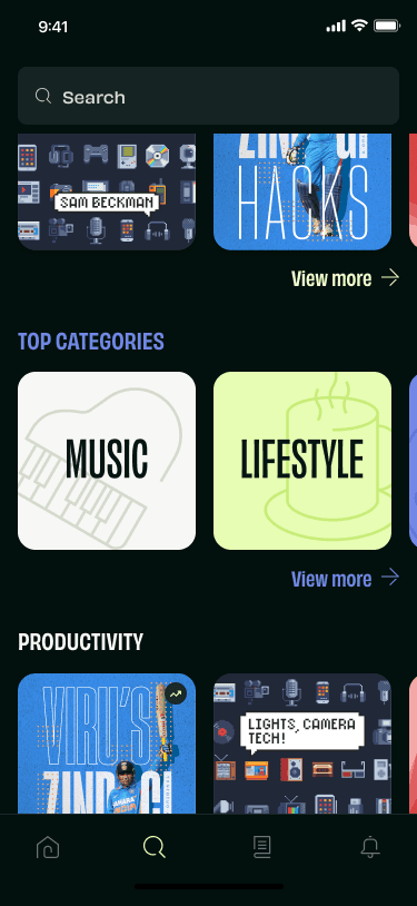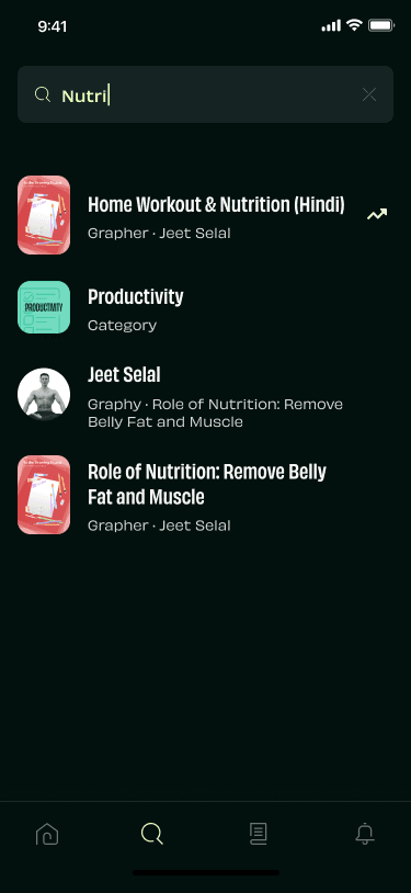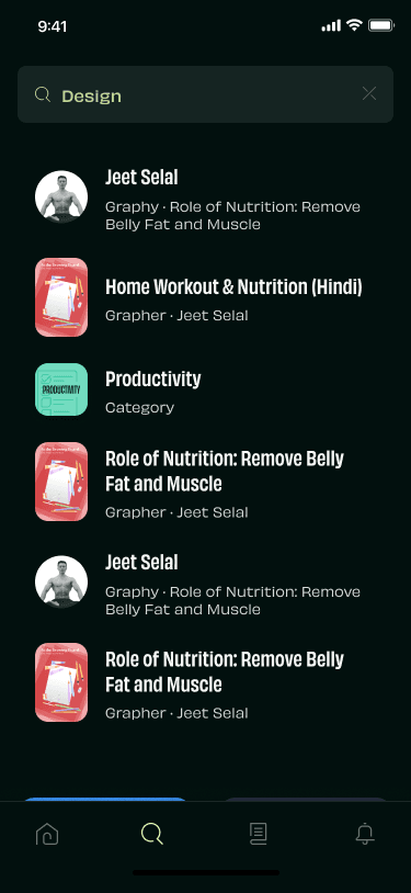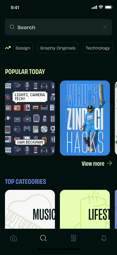 The search flow was redesigned with the introduction of categories, tags, and what’s trending, it enables users to have a more cohesive search experience. It also helps the users discover content in a more personalised manner based on their recent searches.